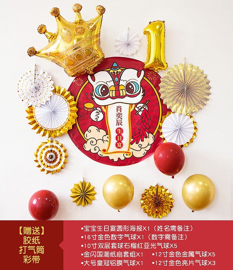 s生日中中式场景国风宴布置宝宝海报周礼周岁儿童装饰气球背景墙热门设计联盟服务商