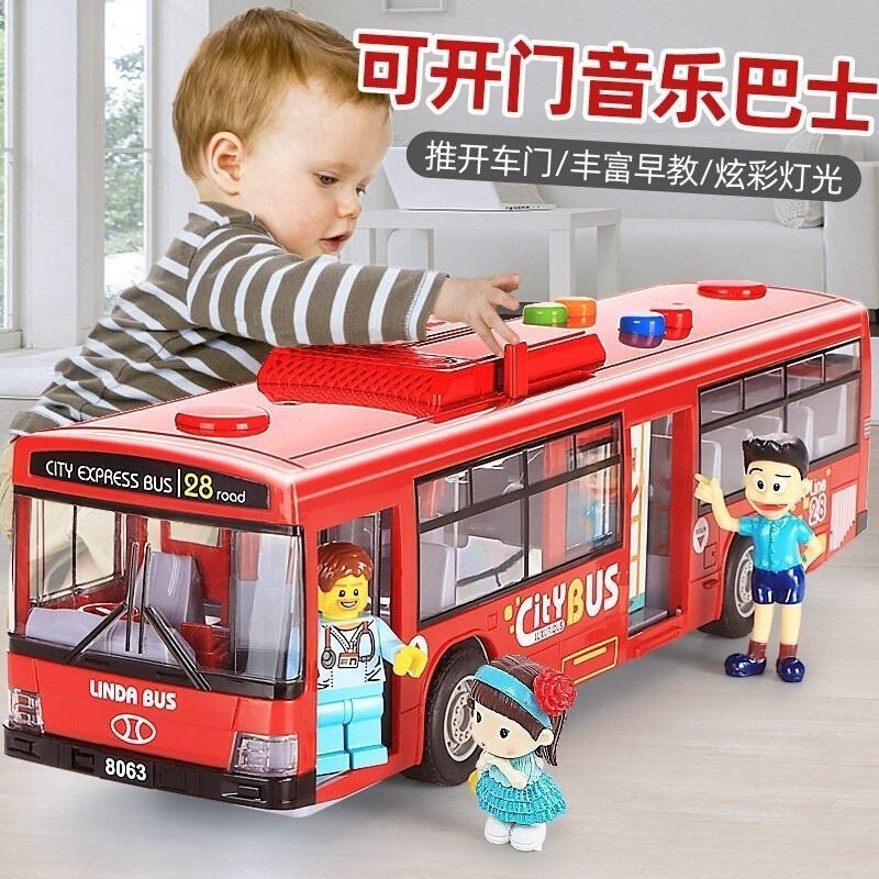 儿童公交车玩具大号开门大t巴车模型仿真公共汽车宝宝巴士男孩礼热门设计联盟服务商